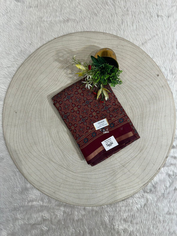 Elegant Ajrakh Print Soft Cotton Saree with Traditional Motifs & Rich Pallu